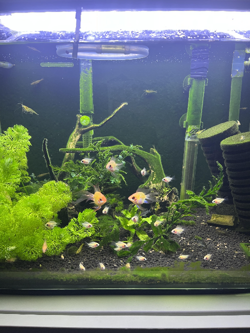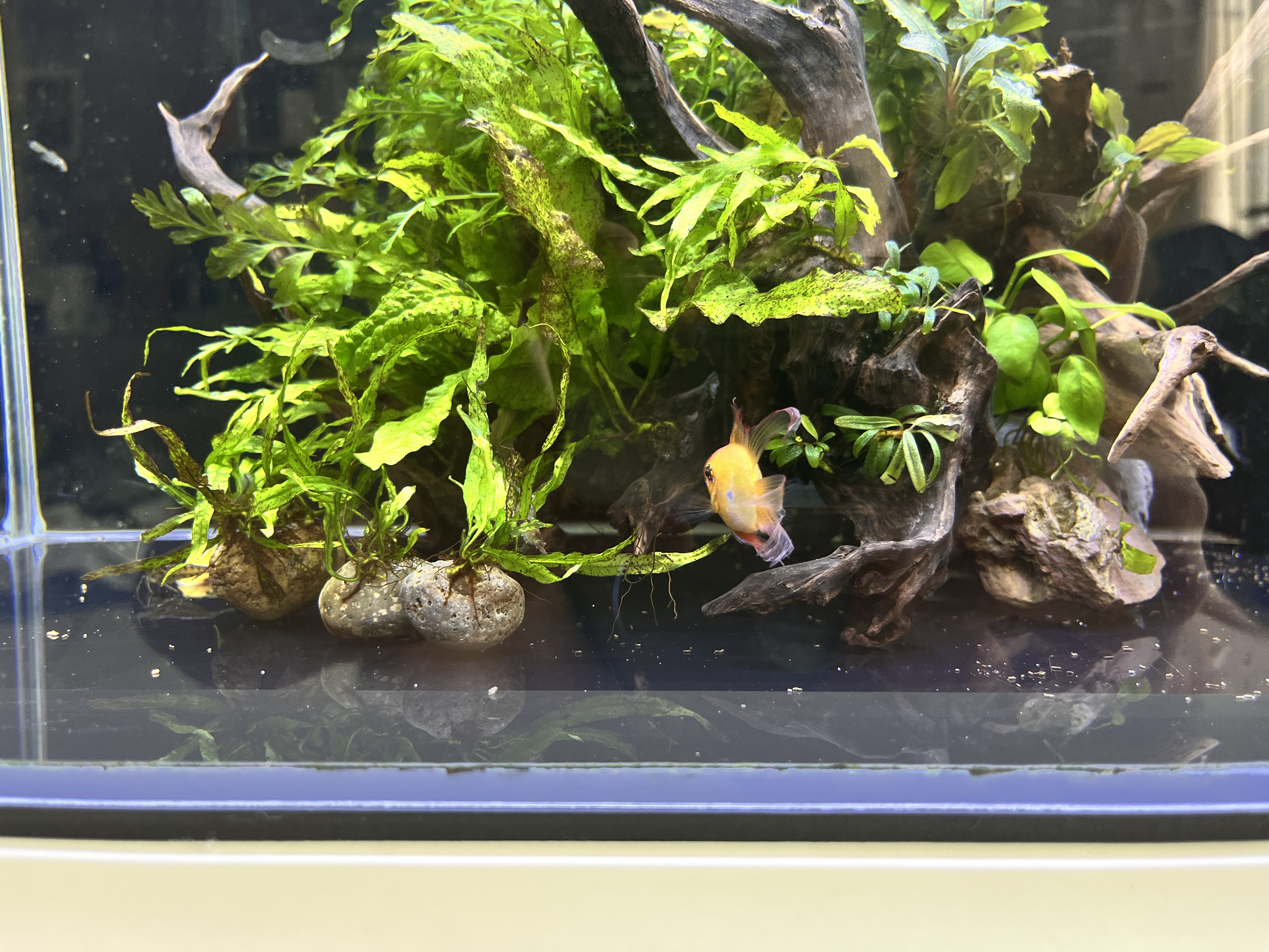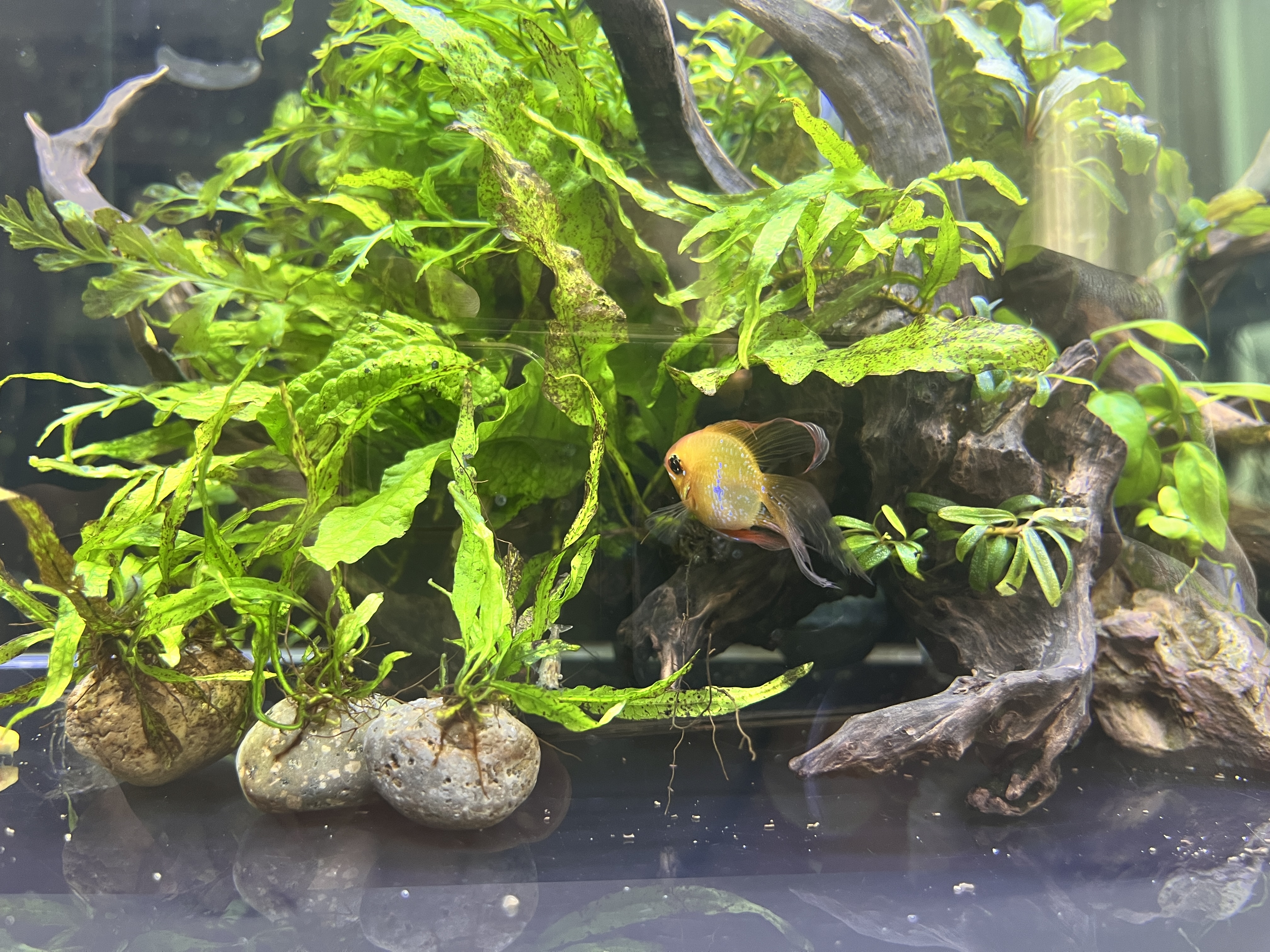 노란 물병아리 같은 똥글똥글한 귀여움과 푸르게 반짝이는 바디, 거기에 붉은 발색과 하늘거리는 롱핀이라면, 아마 처음보는 순간 반하실 꺼에요 ㅠㅠ, 그런데 이게 전부가 아닙니다. 정말 여러가지 성격을 가진 아이들이 많지만 특히 시클리드 종의 특성 상, 1:1 쌍을 잡고(결혼을 하고) 치어를 돌보는 신기하고 감격스러운 광경을 볼 수 있죠.